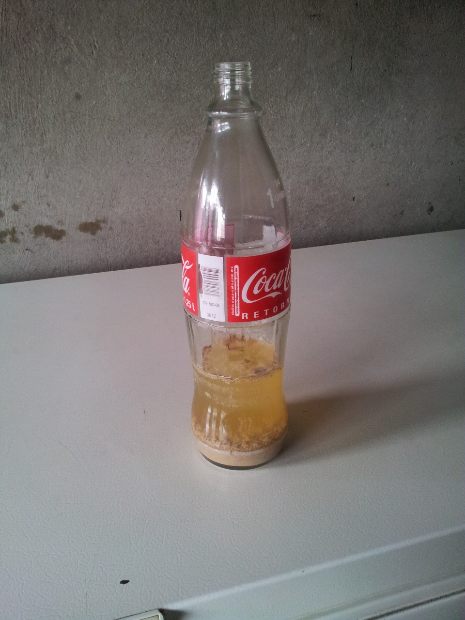 basiamos un poco de coca cola agregamos leche y dejamos reposar por 1 dia y empesamos a ver los cambios la descomposicion de la coca cola con la leche